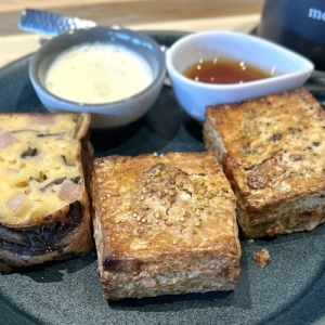 まずはそのまま味わってみて、コクのあるクロテッドクリームとメープルシロップは味変として利用するのがオススメ。