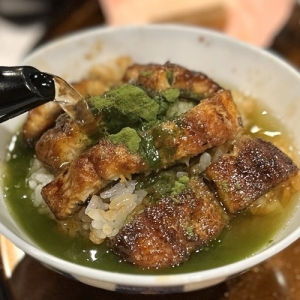 鰻の上にふりかけ、出汁を注げば西尾抹茶ひつまぶしの完成。