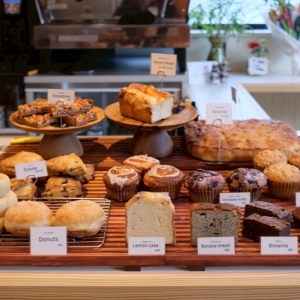 カウンターにはパンや焼菓子、クッキーなどが陳列されています。